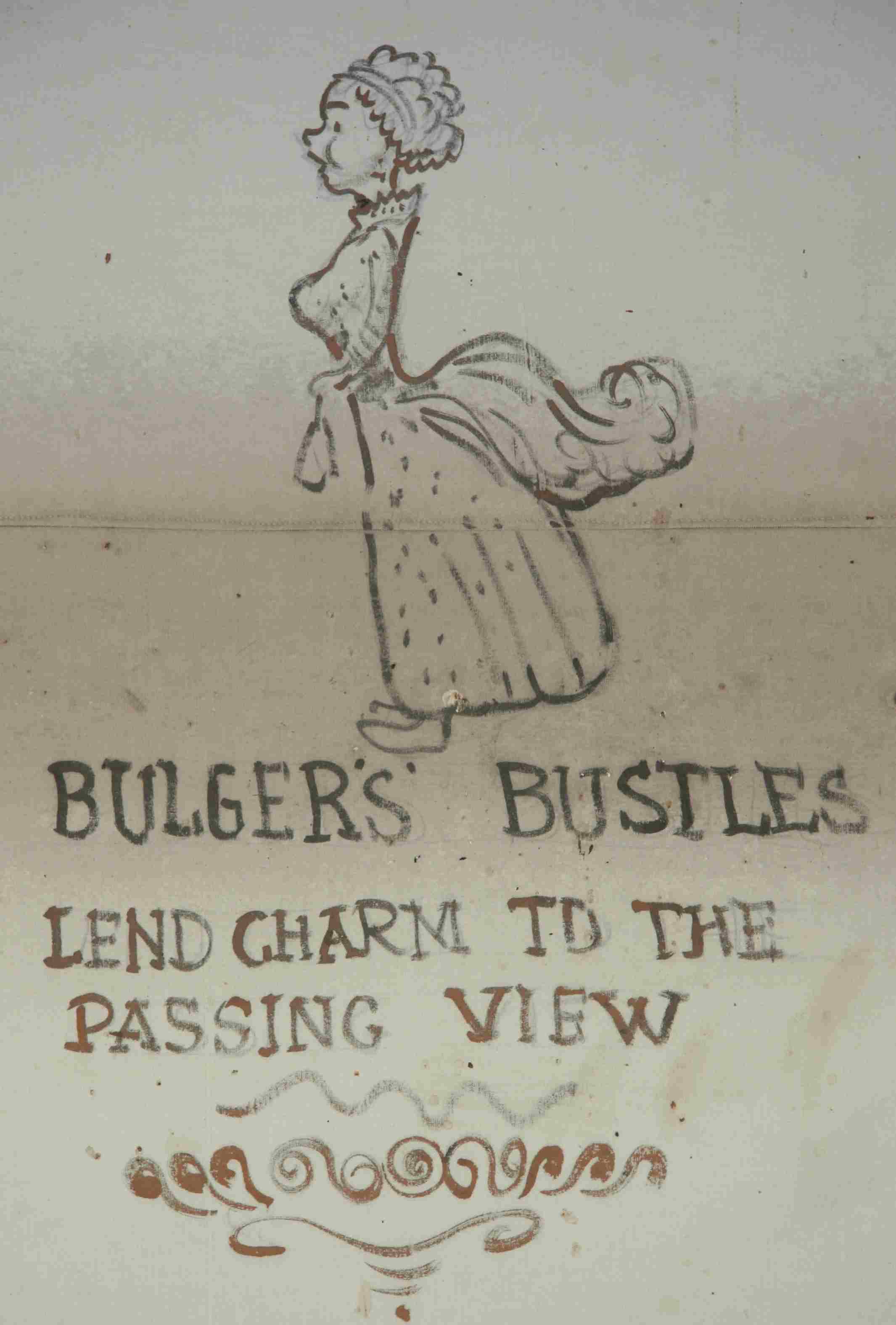 FAIRY SOAP - After the Civil War, N.K. Fairbanks began a soap making company in Chicago. The trademark of the little fairy was modeled for by a young girl...The Fairy idea was very effective advertising and many people remember their mothers insisting on Fairy Soap being used for their Saturday night baths! BULGAR'S BUSTLES - No woman would be caught dead without her bustle in the 1880's! |